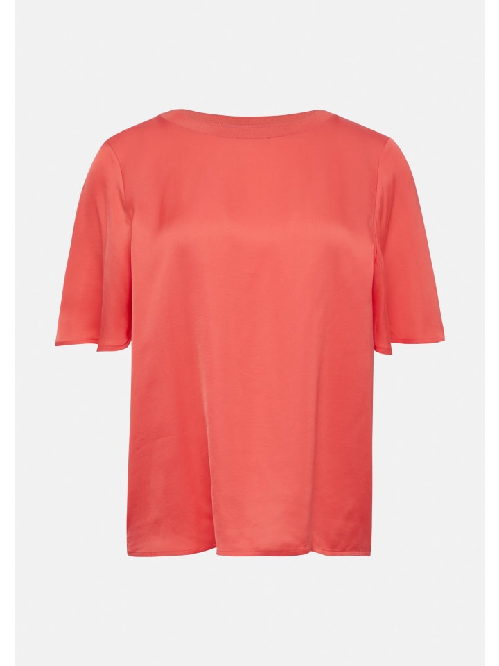 Струящаяся рубашка-блузка из комбинированной ткани: ваш универсальный спутник для повседневных и деловых мероприятий. Эта рубашка с короткими рукавами, круглым вырезом и ребристой отделкой сочетает трикотаж и атлас для гармоничного образа. Изготовленная из высококачественной вискозы, она невероятно мягкая на ощупь. Свободный крой обеспечивает свободу движений и непринужденный стиль. Сочетайте ее с джинсами для создания непринужденного образа или с пиджаком и брюками для стильного делового образа.