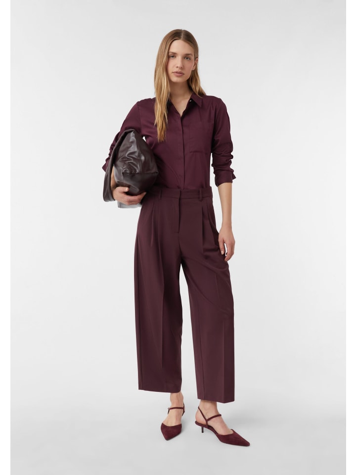 Откройте для себя идеальный баланс элегантности и комфорта в наших укороченных брюках со складками. Свободный крой и средняя посадка подчеркивают фигуру, а длина до щиколотки добавляет современный штрих. Практичные боковые карманы и застежка на крючок с молнией дополняют дизайн. Эти брюки, достаточно универсальные для любого случая - от офиса до вечеринки - станут вашим новым фаворитом.