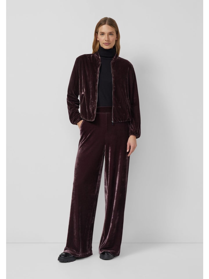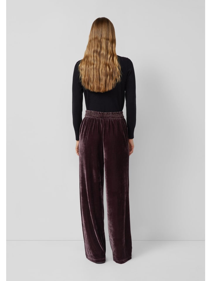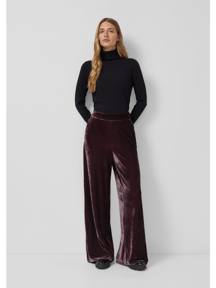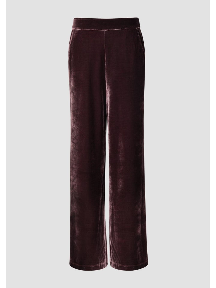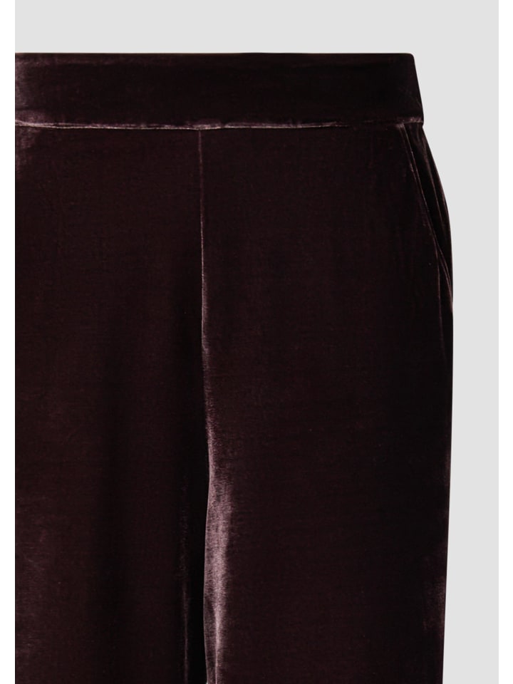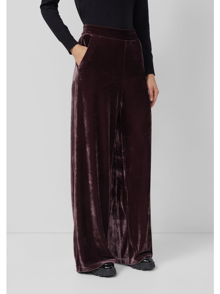 Эти струящиеся бархатные брюки с высоким поясом на резинке создают элегантный образ. Свободный крой и широкие штанины обеспечивают максимальный комфорт, а практичные боковые карманы облегчают повседневную жизнь. Роскошный материал и однотонный дизайн делают эти брюки универсальным дополнением к гардеробу.