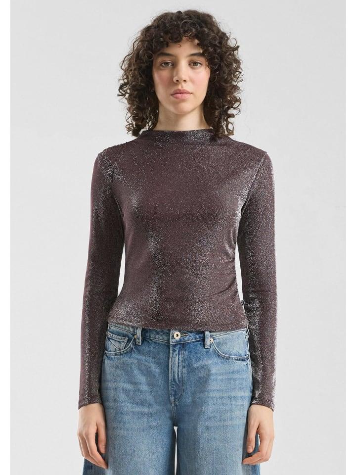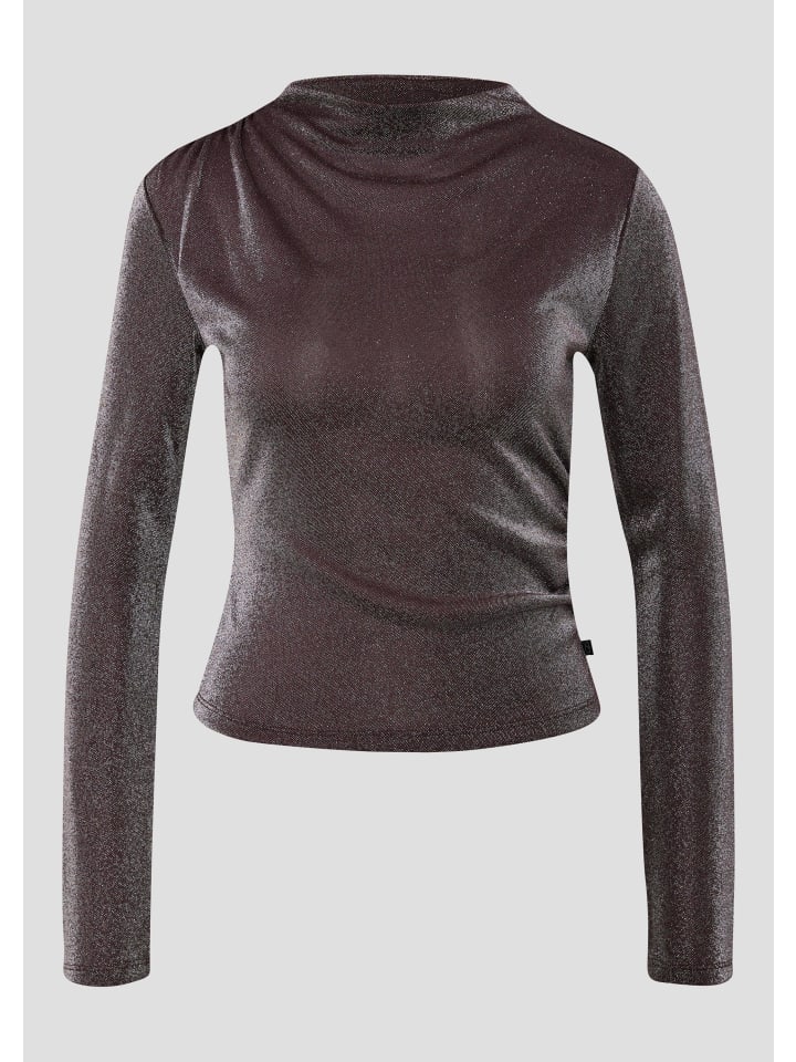 Эта блестящая рубашка с металлическим отливом добавит гламура вашей повседневной жизни. Мягкий трикотаж интерлок приятен на ощупь, а боковые сборки создают стильный силуэт. Приталенный крой и средняя длина делают эту рубашку с длинными рукавами идеальным спутником для непринужденных встреч или спонтанных вечеринок.