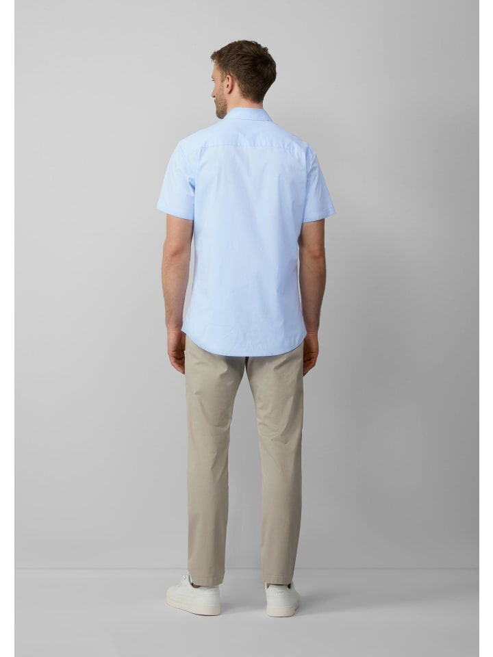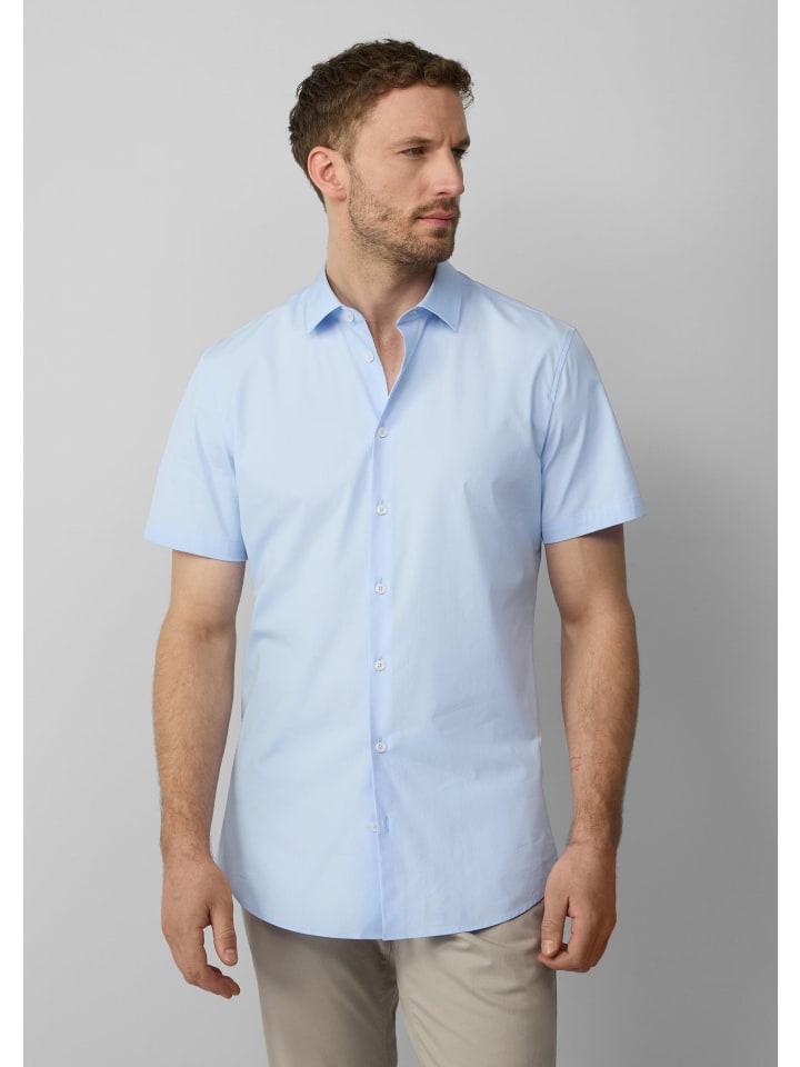Высокое качество изготовления и современный стиль: эта рубашка с короткими рукавами, приталенного кроя, из тонкого хлопкового эластичного материала станет вашим универсальным спутником. Отложной воротник и закругленный низ сочетают в себе элегантность и комфорт. Будь то в офисе или на неформальном мероприятии - вы произведете впечатление своим вневременным стилем и непринужденным уходом.