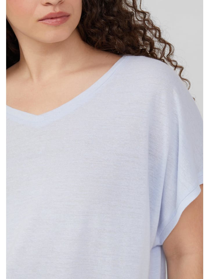 Ваш новый летний фаворит: повседневная рубашка из смесовой льняной ткани с V-образным вырезом и рукавами «летучая мышь». Идеально подходит для прохладных дней и спокойных вечеров. Свободный крой и мягкий трикотаж обеспечивают максимальный комфорт. Ваш новый must-have!