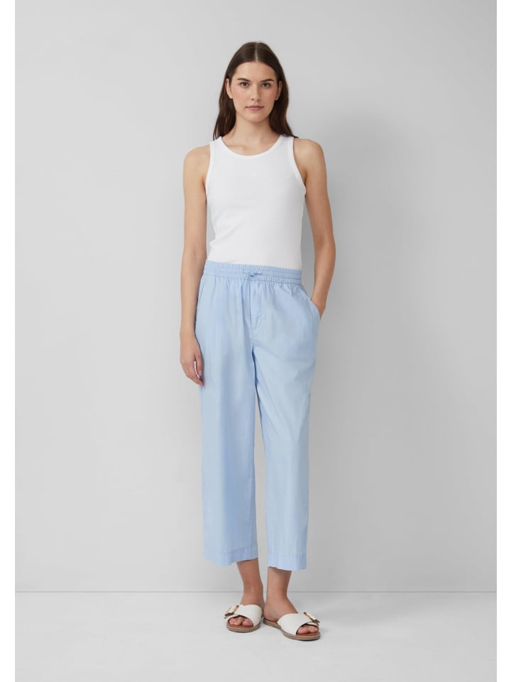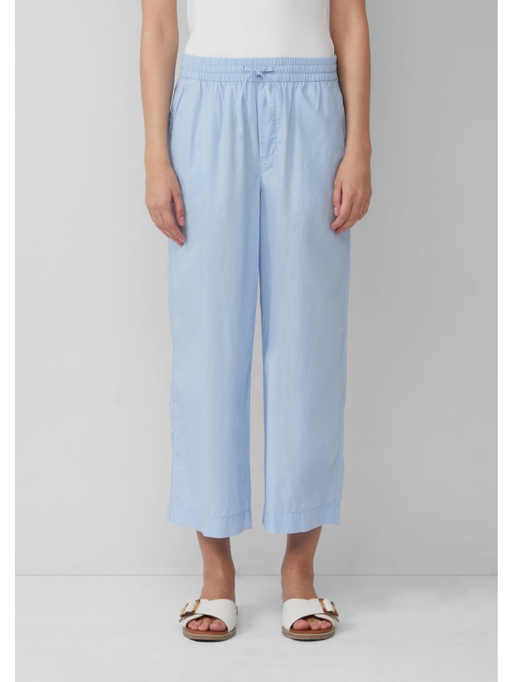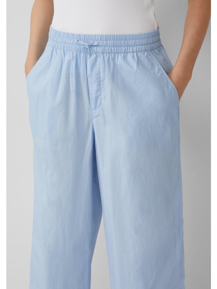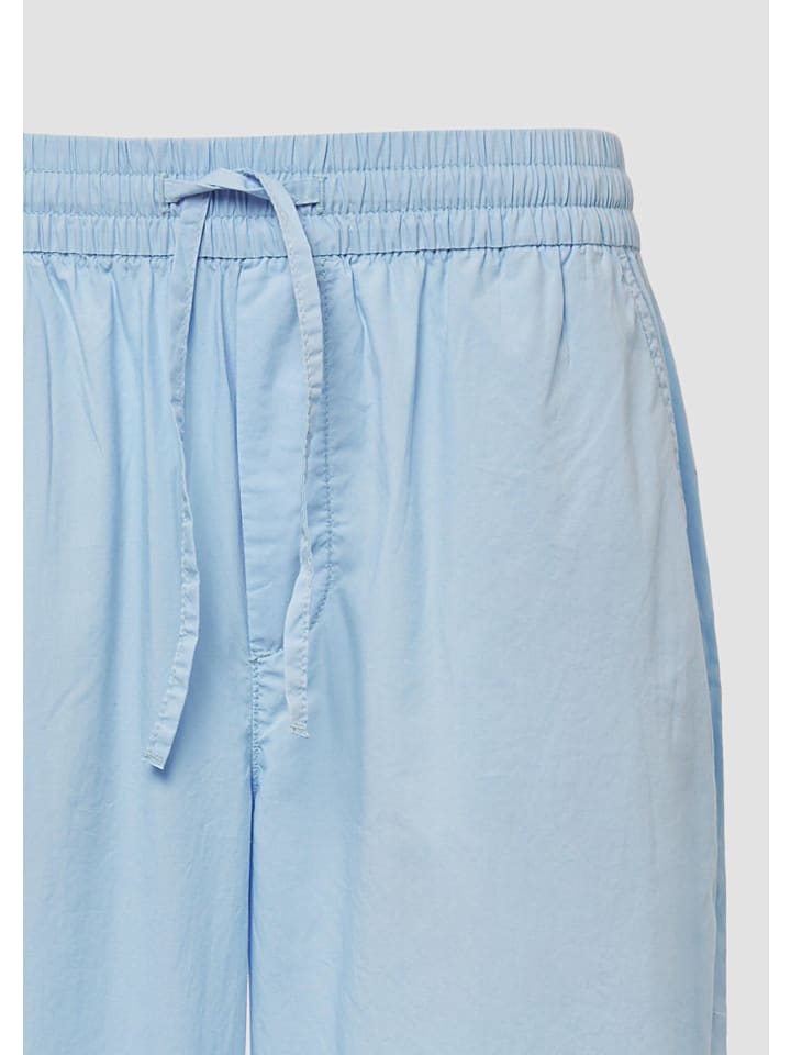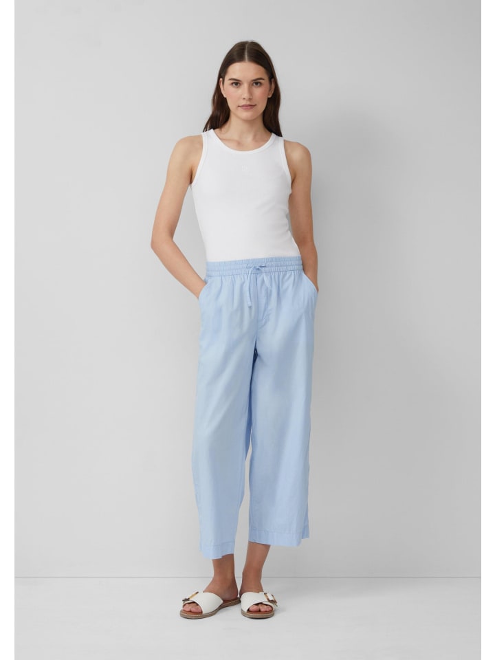 Эти воздушные и легкие брюки-кюлоты из хлопковой смеси обеспечивают максимальный комфорт. Высокая талия на резинке со шнурком и свободный широкий крой делают их идеальным компаньоном для неторопливых летних дней.