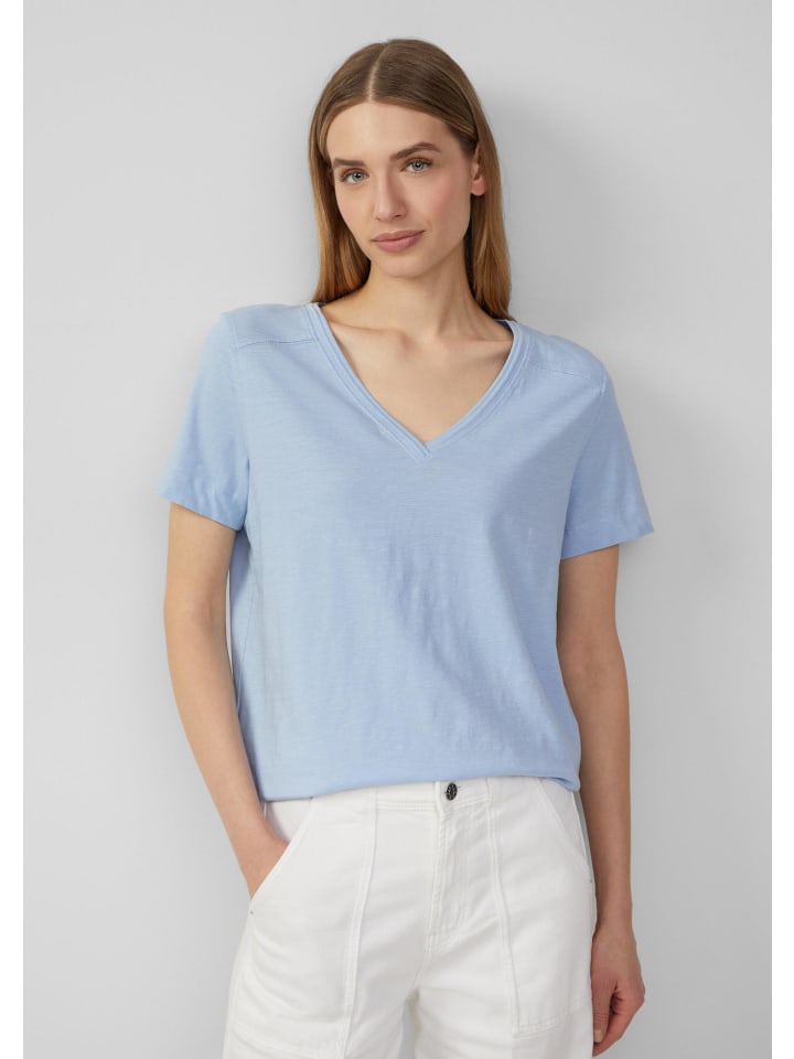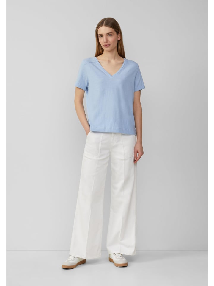Эта мягкая футболка из высококачественной пряжи типа «слэб» имеет свободный V-образный вырез и удобный классический крой. Неизменный повседневный вариант в однотонном дизайне, который легко комбинировать.
