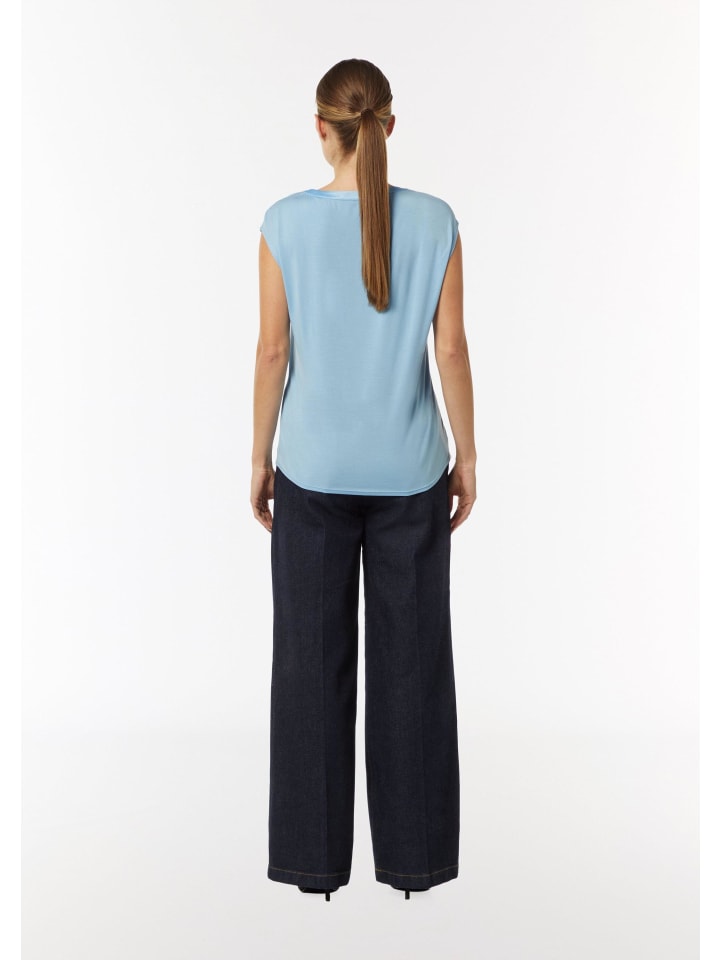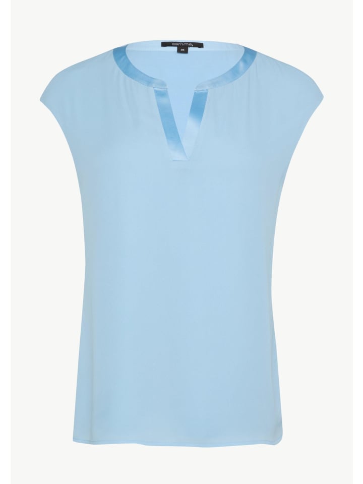 Эта блузка идеально сочетает в себе комфорт и стиль. Трикотажная ткань, состоящая из вискозы и эластана, приятна к телу и обеспечивает оптимальную свободу движений. Спущенные плечи придают рубашке непринужденный вид, а элегантная атласная отделка добавляет изысканный акцент. Благодаря классическому крою эта универсальная блузка легко трансформируется от повседневного до элегантного образа.