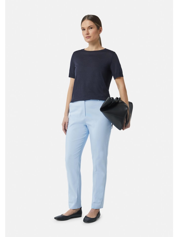 Эти высококачественные брюки-сигареты подчеркнут деловой шик. Средняя посадка и облегающий крой подчеркнут вашу фигуру, а заутюженные складки добавят элегантности. Эластичный материал гарантирует комфорт в повседневной офисной жизни. Эти брюки длиной 7/8 с фигурным поясом и застежкой на крючок обеспечивают идеальную посадку. Сочетайте их с блузкой для создания изысканного образа или с блейзером для важных встреч.