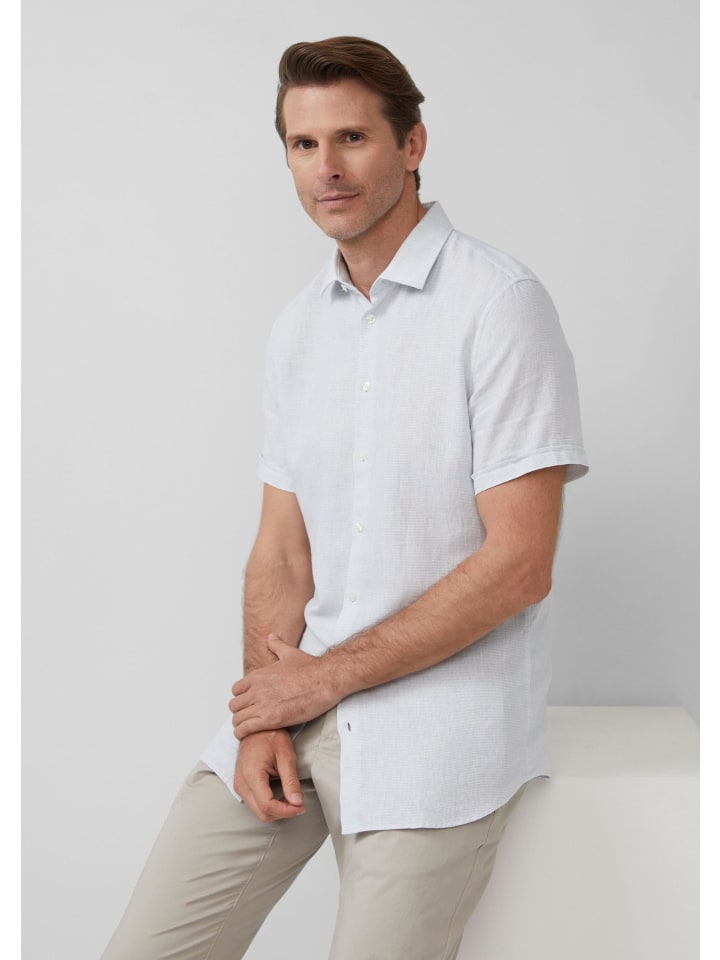 Откройте для себя стильную непринужденность с нашей структурированной рубашкой с короткими рукавами. Приталенный крой и льняная ткань идеально сочетают в себе комфорт и элегантность. Благодаря воротнику Kent и изысканному минималистичному узору эта рубашка будет уверенно сопровождать вас как в офисе, так и на ужине. Подчеркните свой индивидуальный стиль с этой универсальной летней классикой.