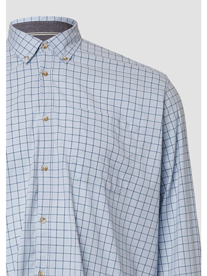 Повседневная рубашка на пуговицах классического прямого кроя со стильным клетчатым рисунком. Закругленный подол и практичный нагрудный карман идеально дополняют непринужденный повседневный образ. Изготовлена из легкого эластичного материала для максимального комфорта.