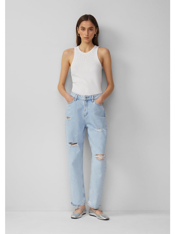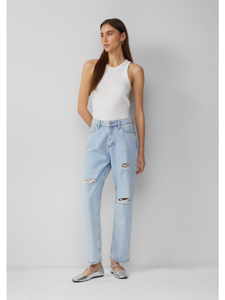 Повседневные, но стильные: эти джинсы до щиколотки с потертостями - идеальный компаньон для расслабленных дней. Прогулка по городу или посещение кафе - вы будете чувствовать себя комфортно и выглядеть великолепно!