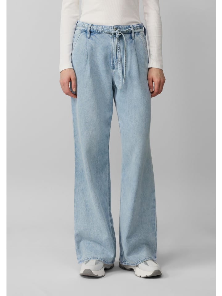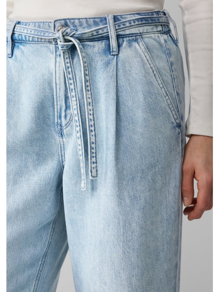 Эти повседневные джинсы с высокой посадкой и классической посадкой впечатляют своим модным широким кроем. Стильный тканевый пояс и классический джинсовый крой делают их идеальным дополнением к вашим повседневным нарядам.