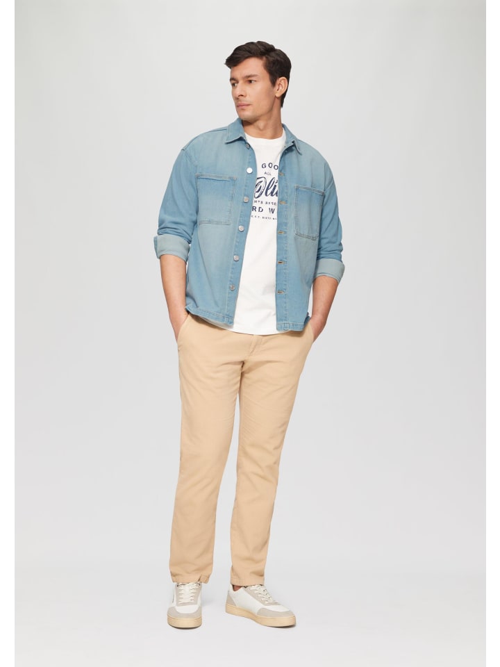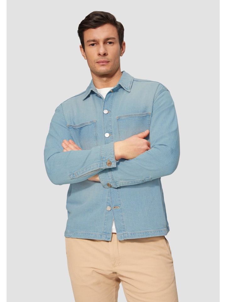 Повседневная джинсовая рубашка с практичным нагрудным карманом и классическим рубашечным воротником. Свободный свободный крой и застежка на пуговицы по всей длине делают ее идеальным дополнением к вашим повседневным образам.