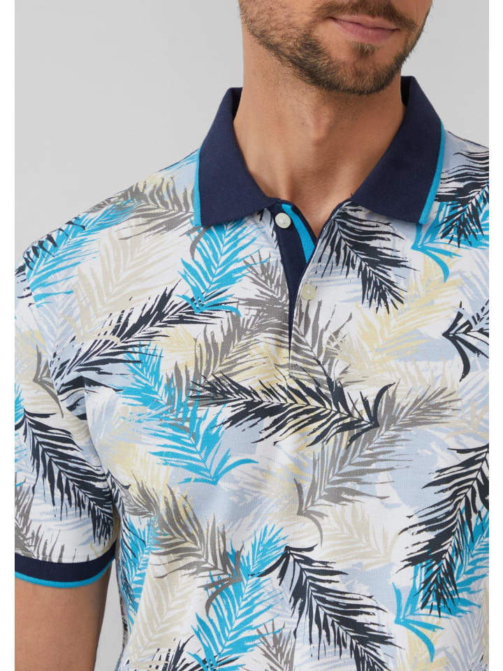 Непринужденная элегантность и универсальность: эта рубашка-поло из пике с принтом по всей поверхности станет вашим идеальным спутником на каждый день. Пьете ли вы кофе с друзьями или отправляетесь на спонтанную прогулку - вы всегда будете выглядеть великолепно. Контрастные детали и разрезы по бокам придают рубашке особый шарм. Удобная, стильная и универсальная - чего еще желать?