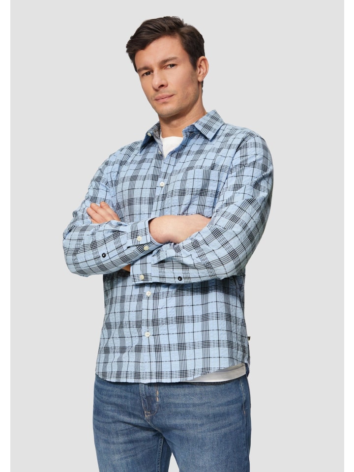 Легкая рубашка из сирсакера с классическим клетчатым рисунком для расслабленных летних дней. Классический крой и воротник-стойка «Кент» обеспечивают непревзойденный комфорт. Практичный нагрудный карман и закругленный подол идеально дополняют повседневный образ.