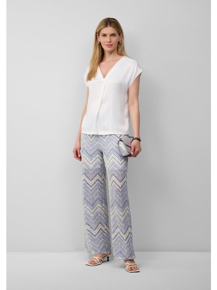 Уверенность и стиль: эти брюки широкого кроя из высококачественного трикотажного джерси сочетают в себе комфорт и элегантность. Благодаря высокому поясу на резинке и подкладке они идеально подходят для создания уверенного образа - от деловых встреч до вечеринок. Узор по всей поверхности подчеркнет вашу индивидуальность и сделает эти брюки универсальным элементом гардероба.