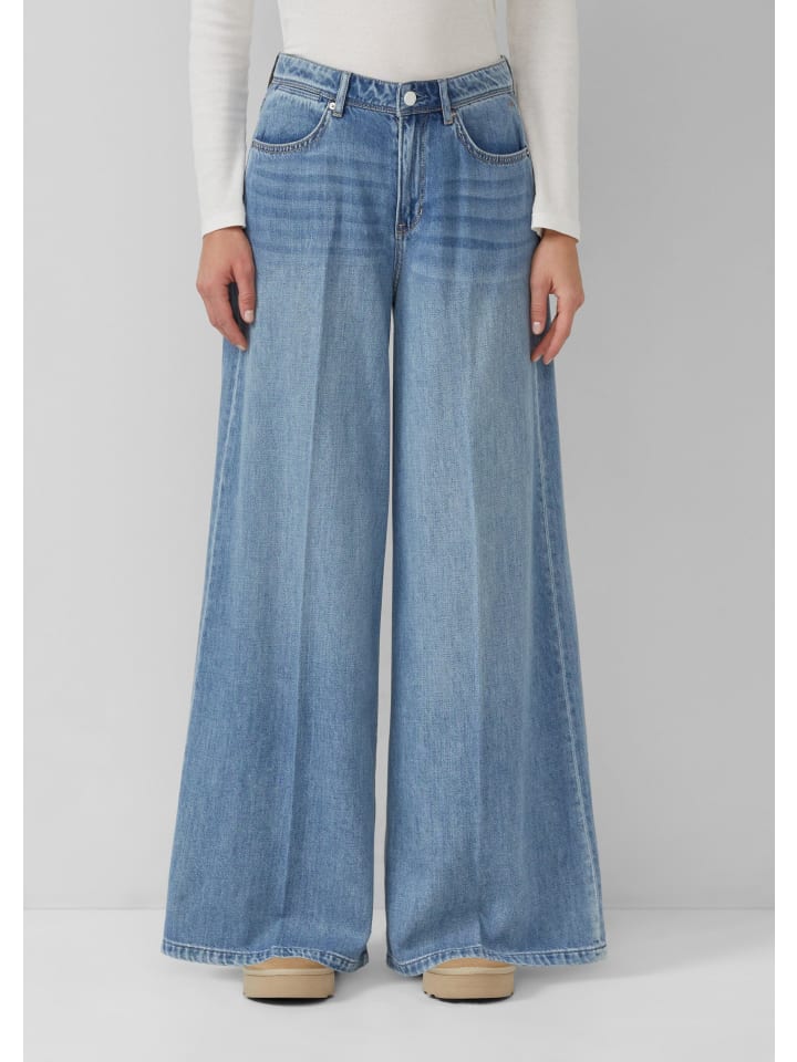 Эти джинсы с высокой талией и стандартным кроем из мягкого лиоцелла отличаются очень широкими штанинами и элегантной вышивкой. Классический дизайн с пятью карманами делает их идеальным повседневным аксессуаром - как для повседневных, так и для торжественных случаев.