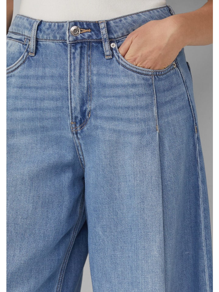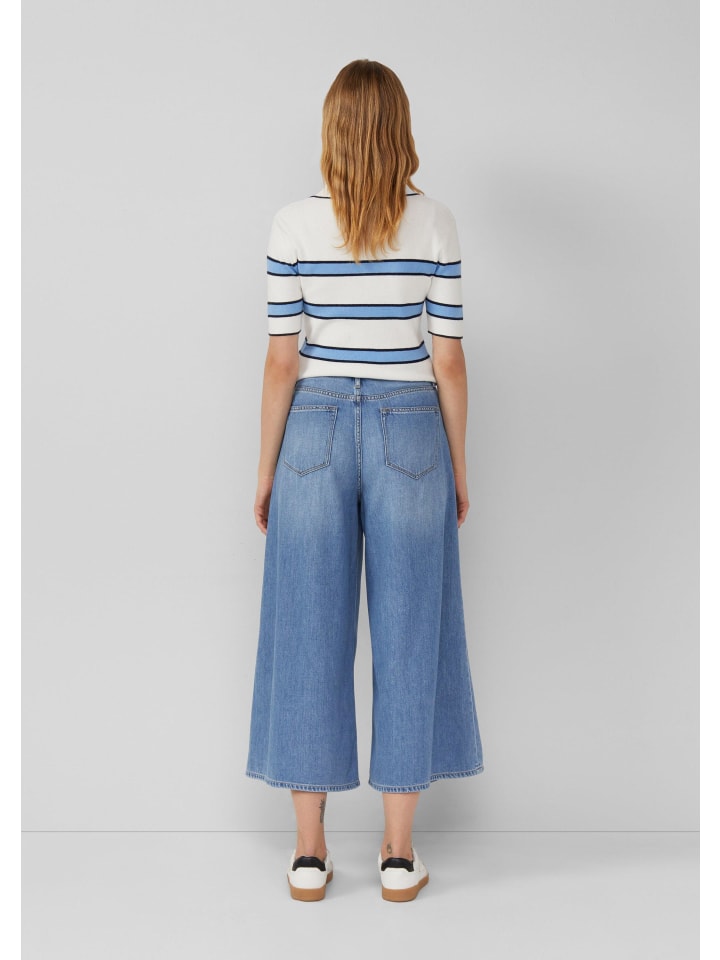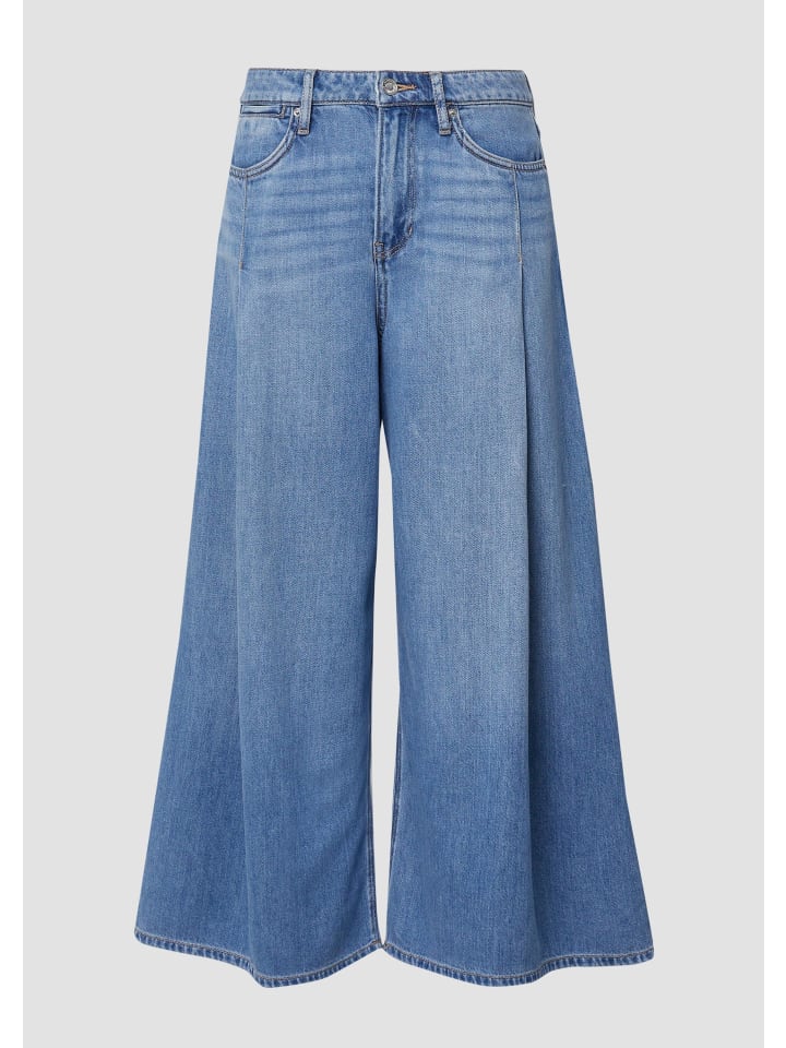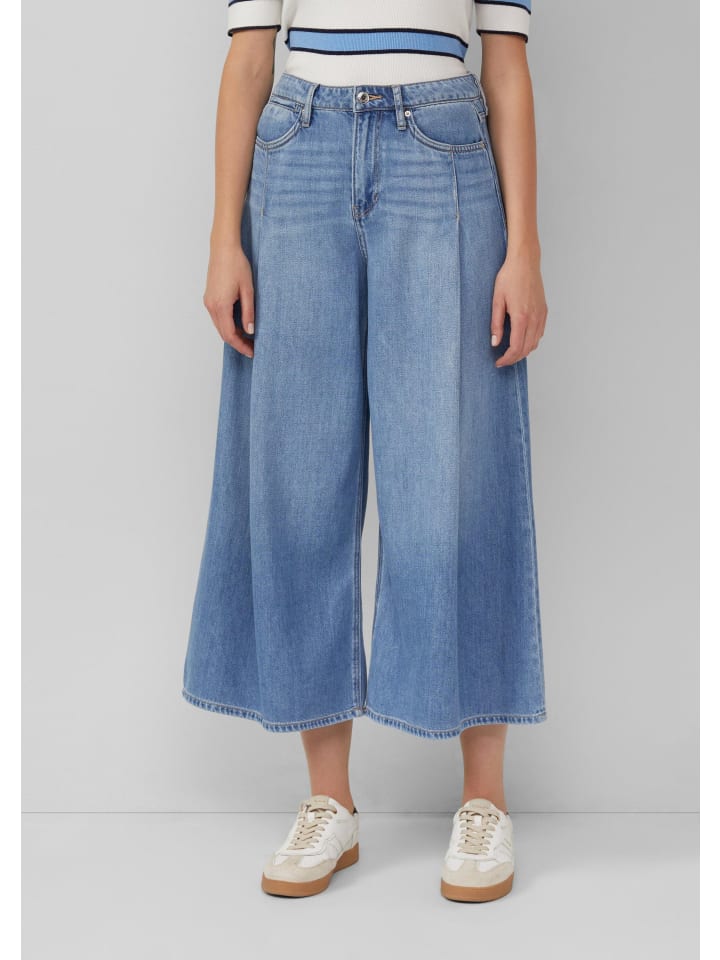 Эти очень широкие джинсы с высокой посадкой и свободным кроем впечатляют струящейся тканью из лиоцелла. Непринужденный фасон кюлотов и классические детали с пятью карманами делают их вашим новым фаворитом для создания непринужденных образов в стиле casual.