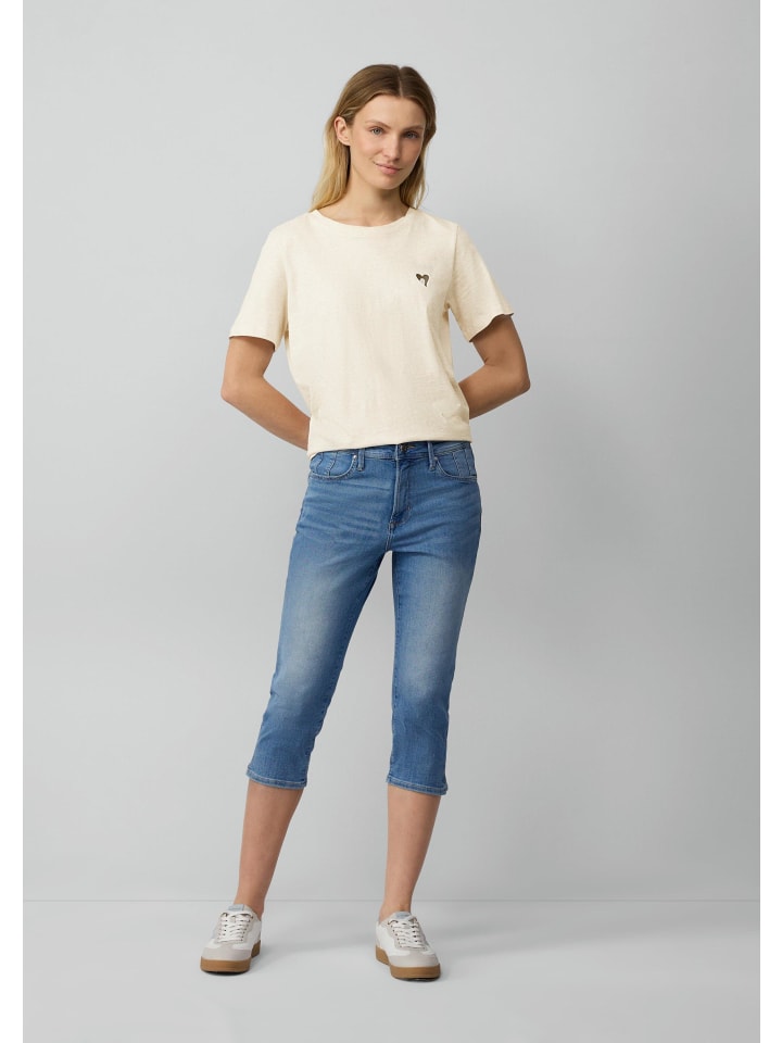 - Средняя посадка, узкие штанины, длина капри