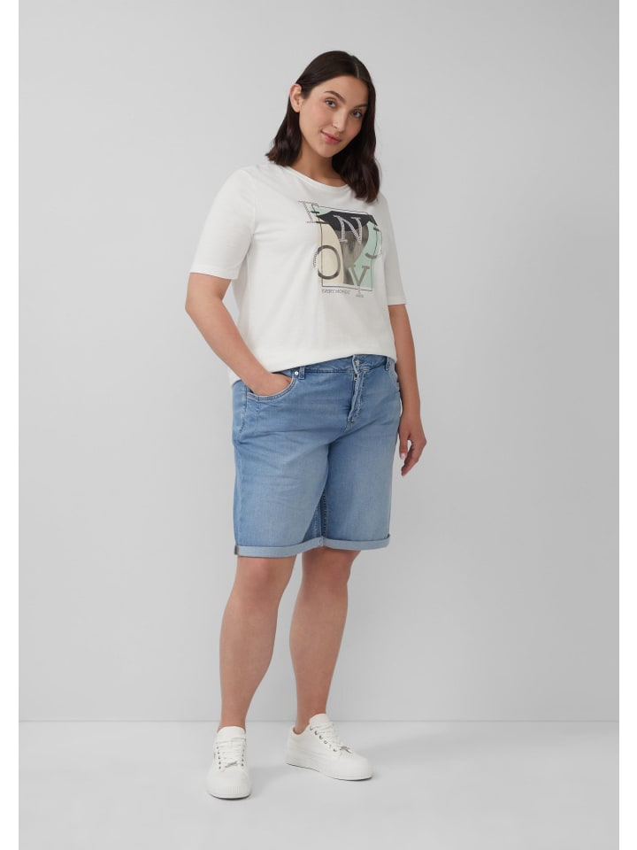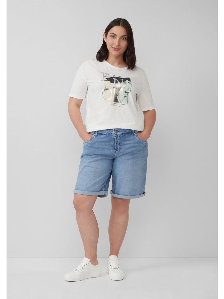 Эти эластичные джинсы-бермуды с завышенной посадкой идеально облегают фигуру. Средняя посадка с практичными шлевками для ремня, классический дизайн с пятью карманами и зауженный крой делают их идеальным дополнением к повседневной жизни.