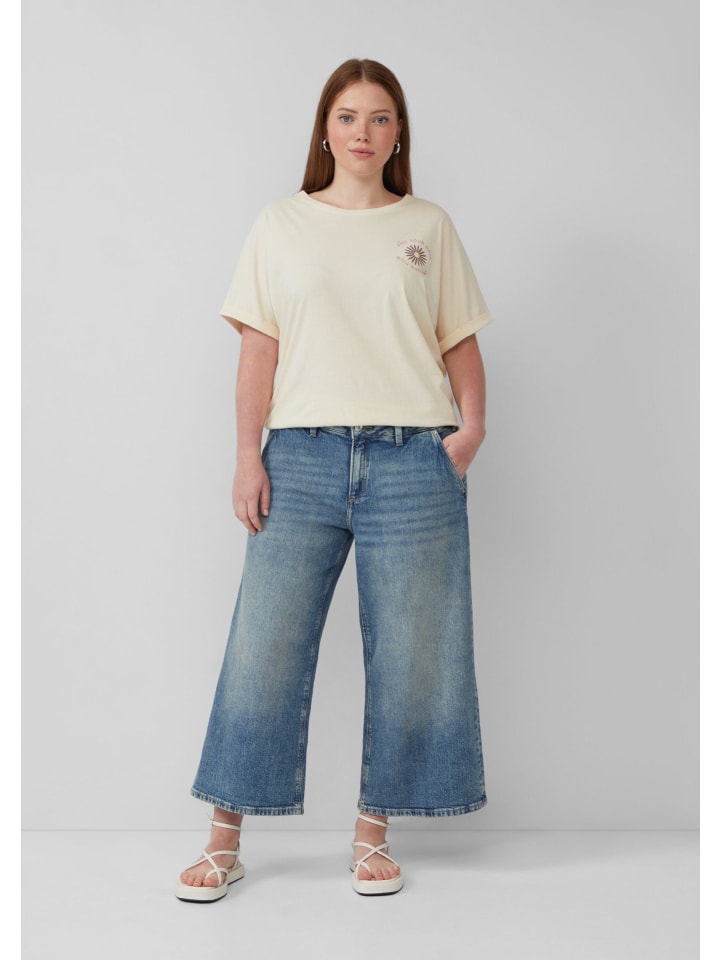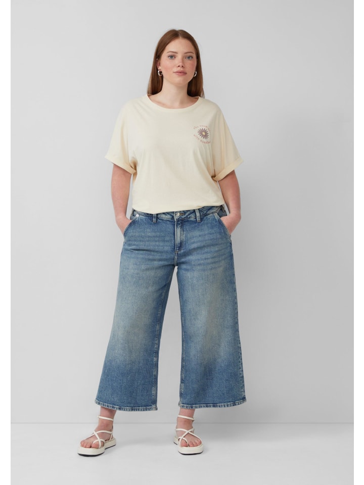 Модные джинсы-кюлоты с широкими штанинами и средней посадкой. Эластичный деним обеспечивает идеальную посадку и максимальный комфорт. Практичные карманы и шлевки для ремня обеспечивают непринужденный повседневный образ.