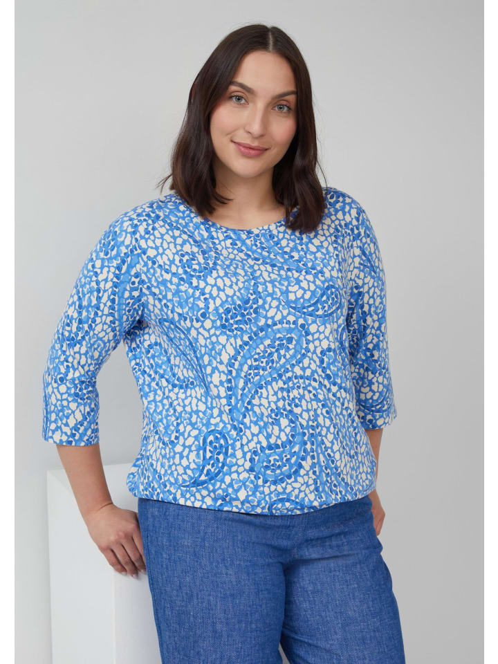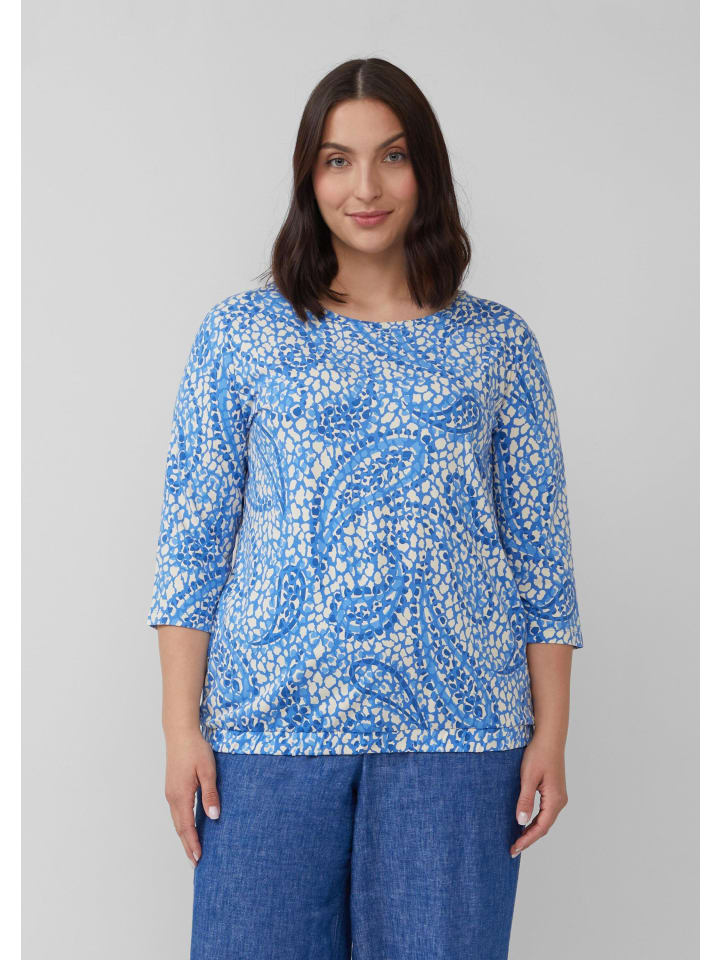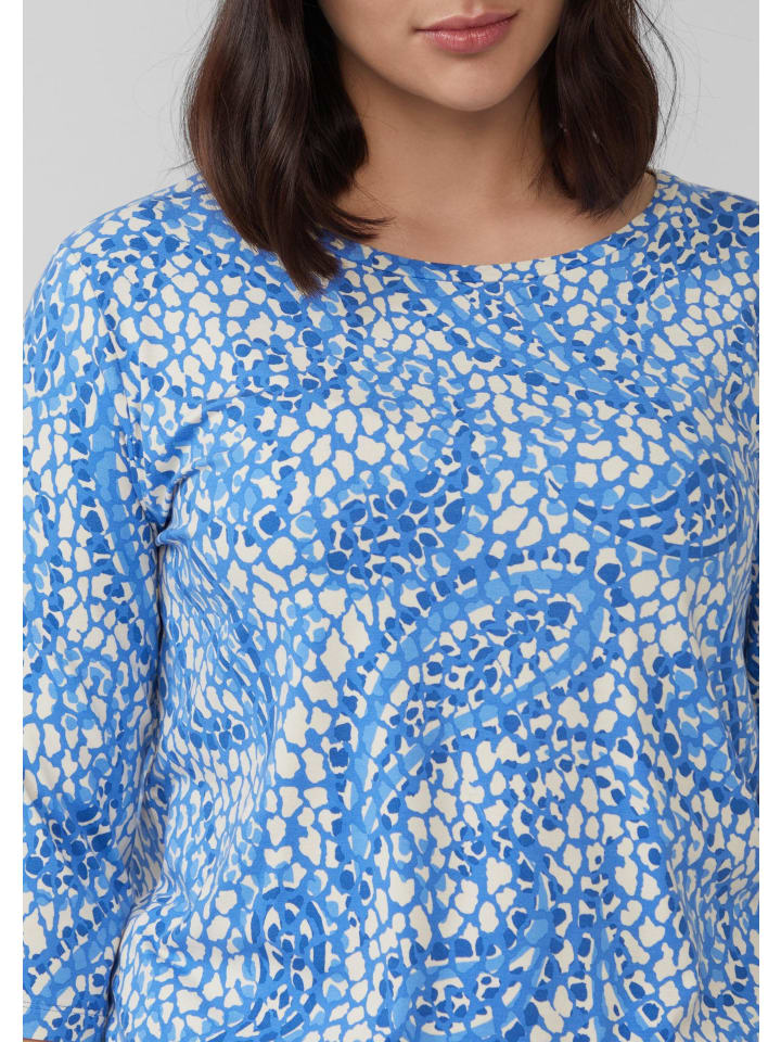 Эта мягкая вискозная эластичная рубашка свободного О-образного кроя будет вашим незаменимым спутником в течение всего дня. Благодаря эластичному подолу, классическому круглому вырезу и стильному принту по всей поверхности она быстро станет вашим новым фаворитом.