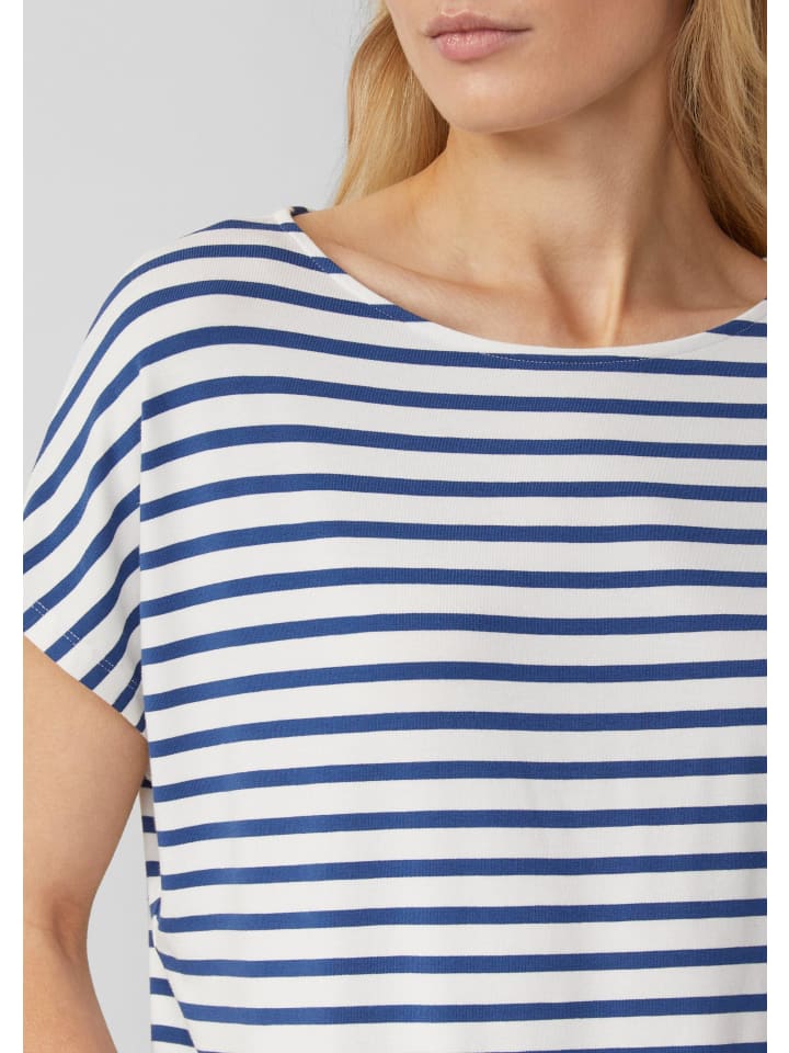 Ищете повседневную вещь на каждый день? Эта полосатая футболка из мягкой вискозной ткани - ваш новый фаворит! Благодаря спущенным плечам и свободному крою она идеально дополнит ваш повседневный образ. Пьете ли вы кофе с друзьями или гуляете по городу, вы будете чувствовать себя в ней великолепно. Как насчет спонтанной прогулки в вашей новой любимой вещи?