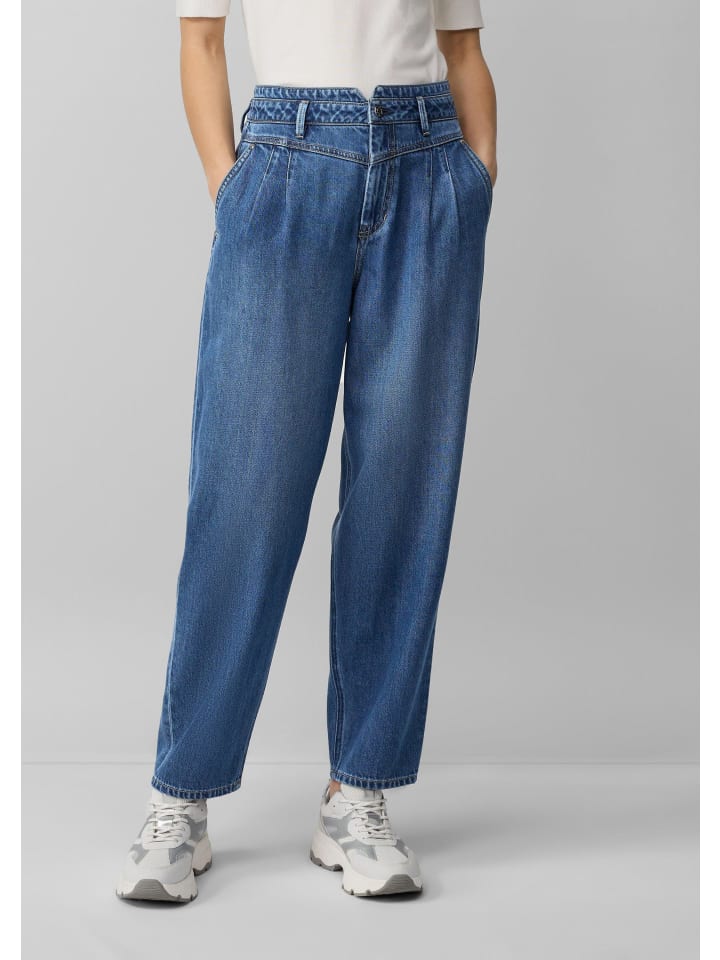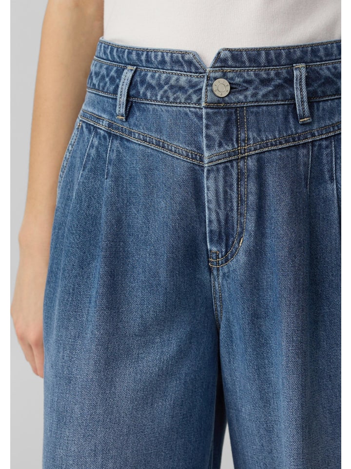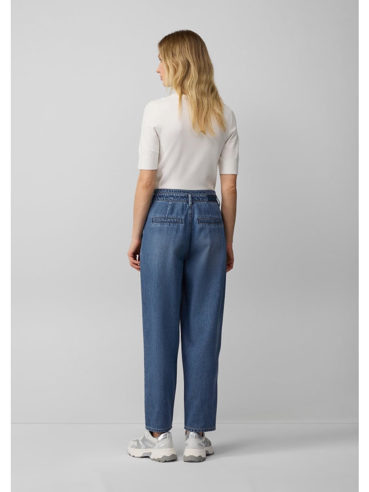Повседневные джинсы с высокой посадкой до щиколотки в модном бочкообразном стиле. Свободный крой и удобная джинсовая ткань гарантируют максимальный комфорт. Практичные боковые карманы и шлевки для ремня для вашего индивидуального стиля.