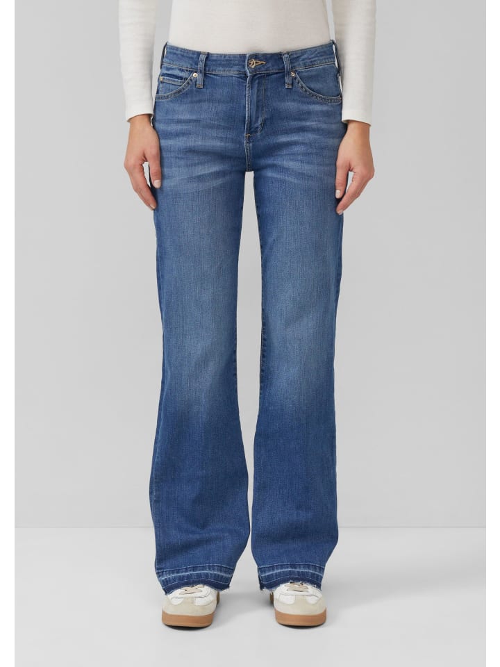 Эти стильные джинсы облегающего кроя сочетают в себе классический пятикарманный крой с модным расклешенным кроем и бахромой по низу. Средняя посадка и хлопково-эластичная ткань делают их идеальным вариантом для деловых встреч и вечеринок.