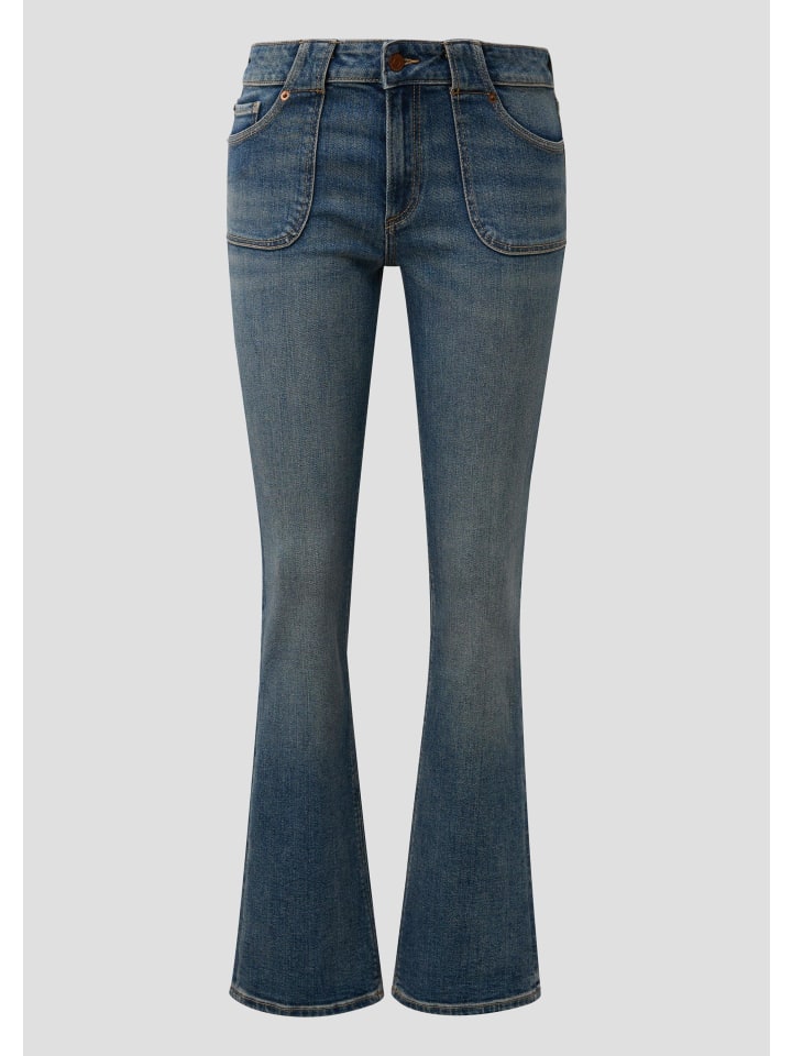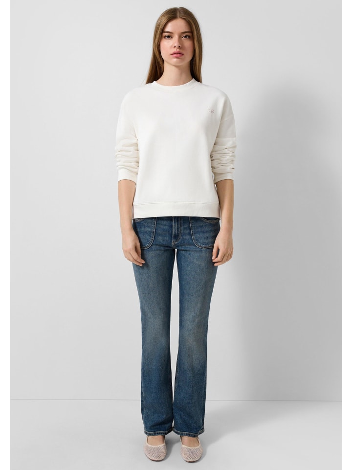 Эти эластичные джинсы средней посадки облегающего кроя сочетают в себе непринужденный, потертый вид и максимальный комфорт. Расклешенные штанины и классический дизайн с пятью карманами делают их идеальным дополнением к расслабленным повседневным образам.