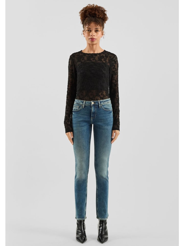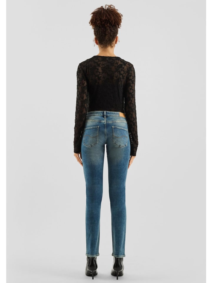 Эти джинсы Catie с зауженным кроем и средней посадкой станут идеальным компаньоном для расслабленных дней. Эластичный деним обеспечивает максимальный комфорт, а потертости придают образу непринужденный вид. Узкий силуэт сочетается с чем угодно - от кроссовок до ботинок. Классический крой с пятью карманами сочетается с современным кроем.