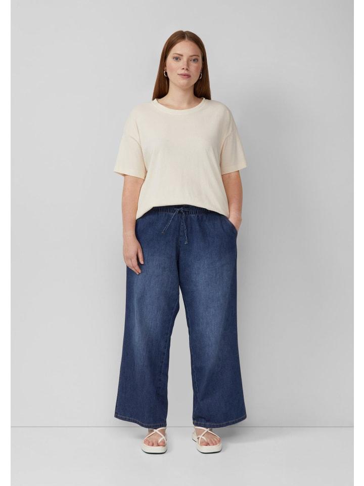 Повседневные джинсы широкого кроя для непринужденного образа: эти легкие джинсовые брюки с практичной кулиской и средней посадкой впечатляют своей мягкой хлопковой тканью. Благодаря боковым и задним карманам они идеально подойдут для повседневного стиля и отдыха.