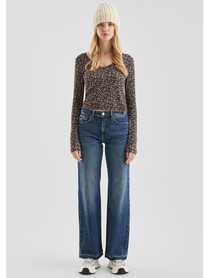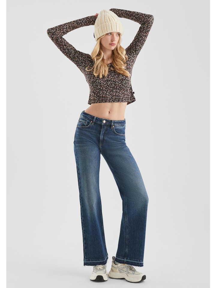 Эти джинсы с высокой талией и широкими штанинами - ваш новый фаворит для расслабленных дней. Благодаря непринужденному потертому крою, комфортному эластичному дениму и стильному дизайну с пятью карманами, они идеально дополнят ваш повседневный образ. Необработанный край добавит изюминку.