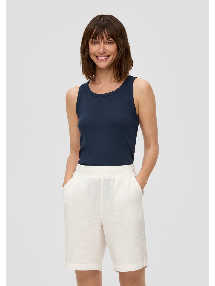 Эта эластичная майка в рубчик - идеальный выбор для жарких летних дней. Облегающий крой, круглый вырез и без рукавов, выполнен из комфортной смеси хлопка и эластана. Носите ее с шортами или под кардиганом для стильного многослойного образа. Приобретайте ее прямо сейчас и получите эту универсальную базовую модель!