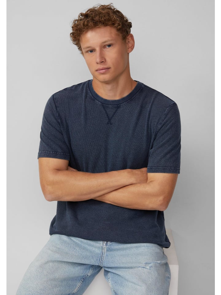 Ваш новый любимый стиль: эта футболка из фактурного трикотажа с эффектом стирки - идеальное сочетание комфорта и прохлады. Благодаря круглому вырезу и стандартному крою она подойдет для любого случая - от отдыха до вечеринки. Хлопок обеспечивает комфорт.