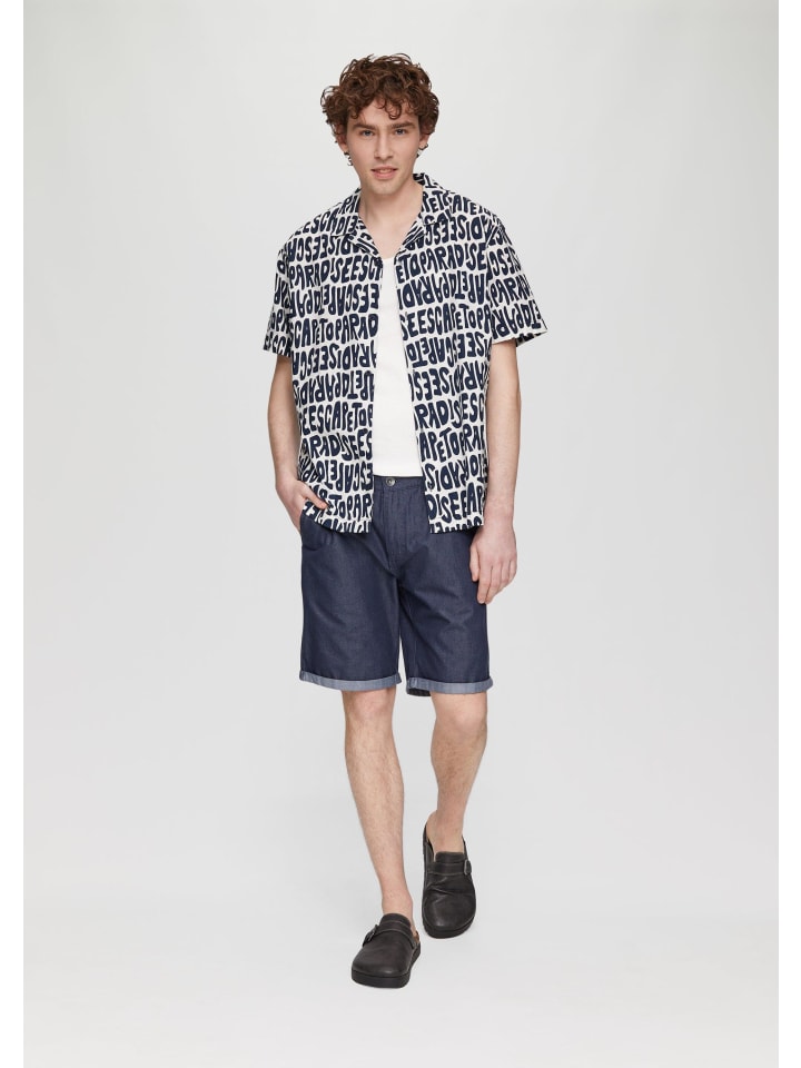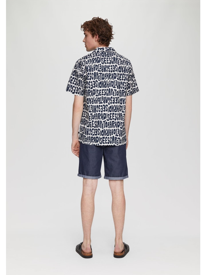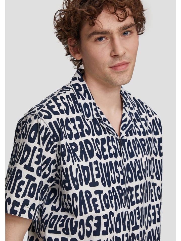 Ваше летнее обновление: рубашка с короткими рукавами и принтом по всей поверхности V-образного выреза. Свободный крой из смеси хлопка и льна для непринужденного образа. Идеально подходит для прохладных дней и вечеров. Планка на пуговицах и лацканы с вырезом дополняют непринужденный образ.