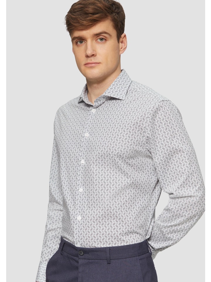 Подчеркните свой стиль с этой эластичной хлопковой рубашкой приталенного кроя. Сплошной принт добавит элегантности в любой ситуации. Благодаря закругленному подолу и планке на пуговицах ее легко носить как в офисе, так и на неформальном ужине. Слегка эластичная ткань обеспечивает комфорт и свободу движений, создавая образ, который идеально отражает вашу индивидуальность.