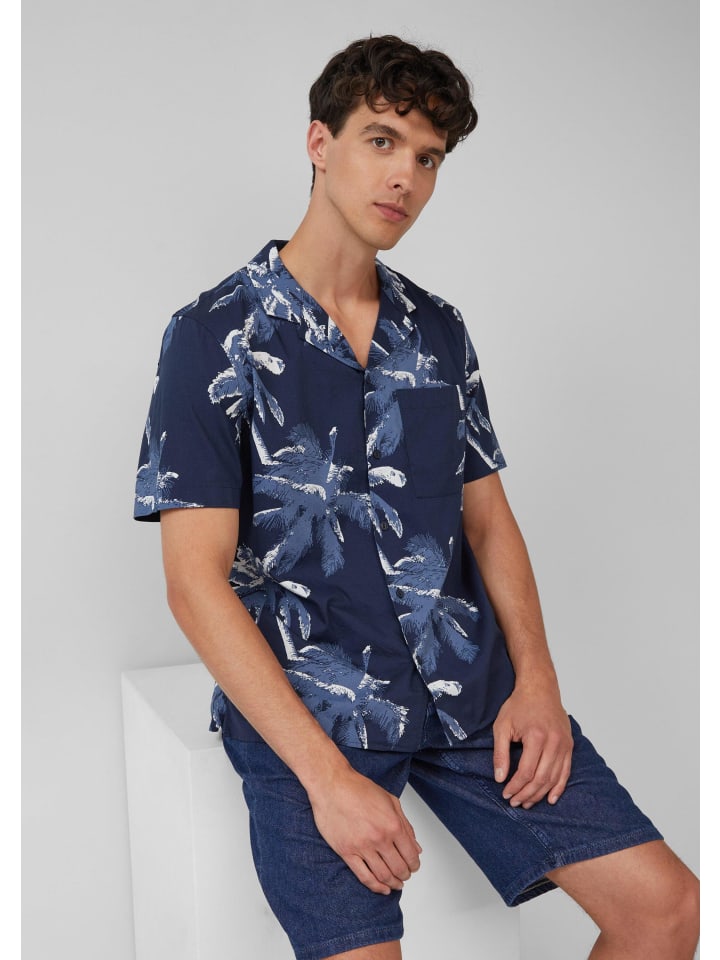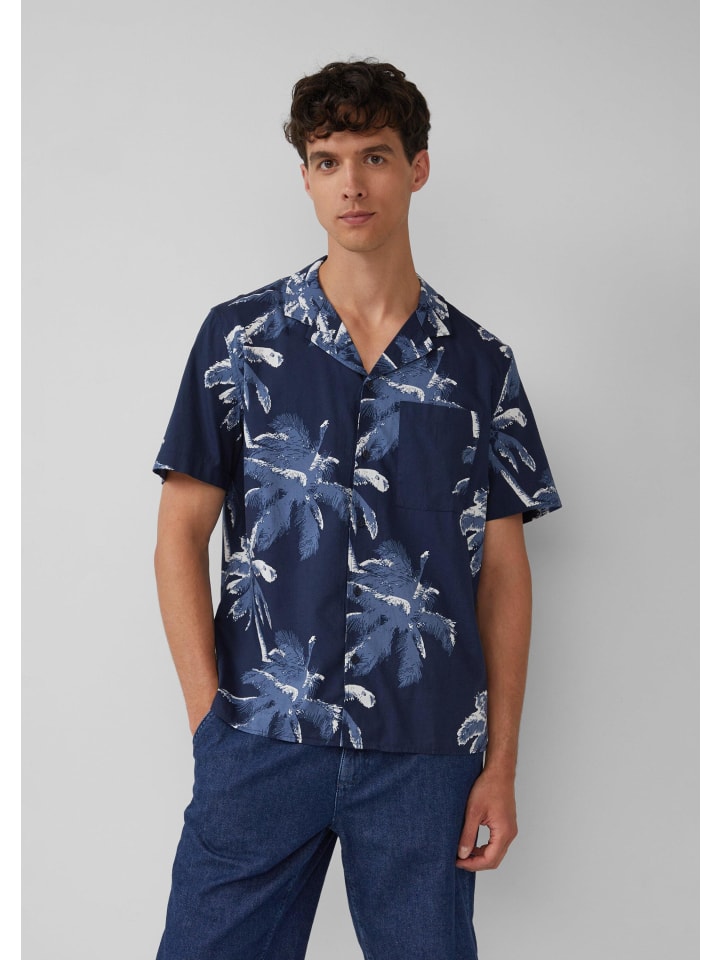 Свободная рубашка с короткими рукавами, свободного покроя, с летним принтом по всей поверхности. Вискозная смесовая ткань и закругленный низ обеспечивают комфортную носку - идеально подходит для отпуска и отдыха. Удобный нагрудный карман и классический лацкан с заостренным лацканом.