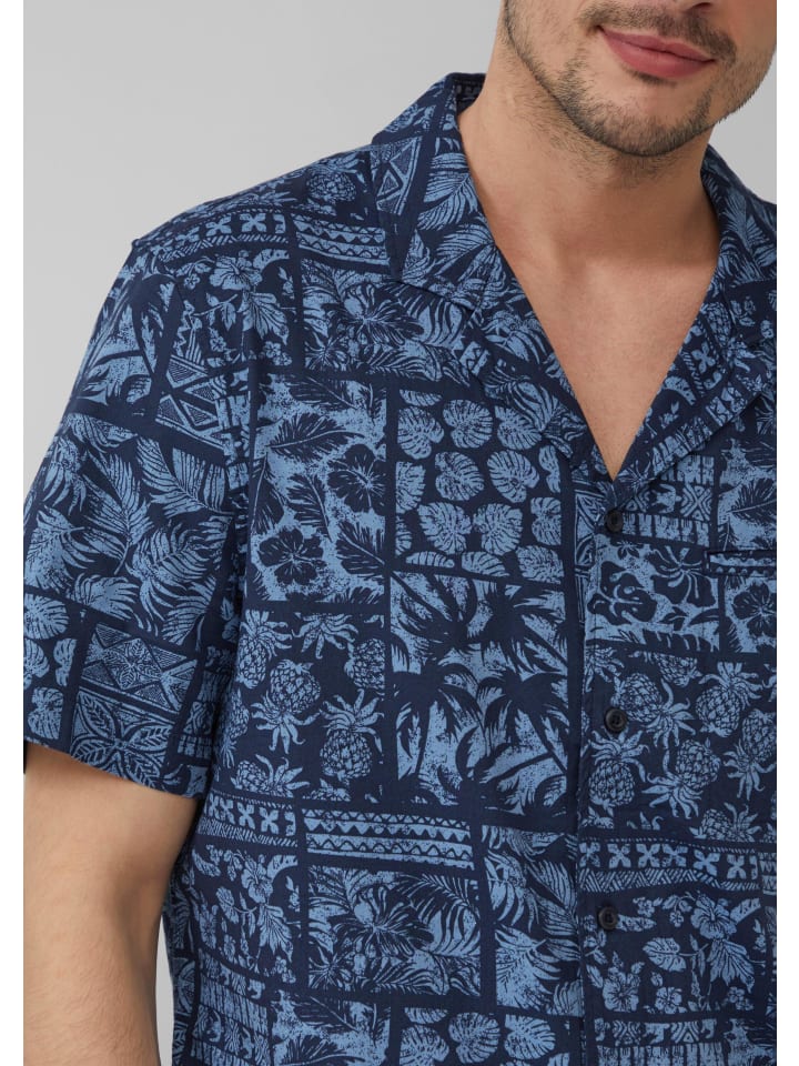 Эта повседневная рубашка с короткими рукавами в курортном стиле впечатляет своим летним рисунком по всей поверхности. Воздушный поплин и закругленный подол делают ее идеальным дополнением для расслабленных пляжных дней и городских повседневных образов.