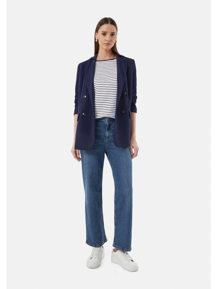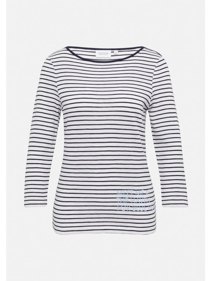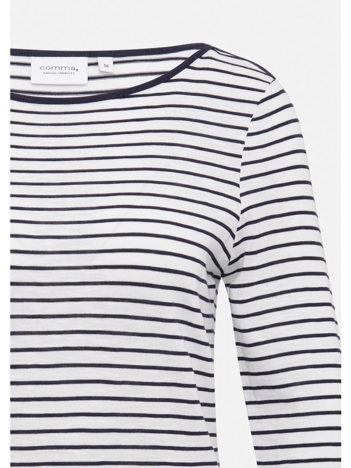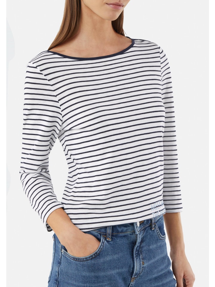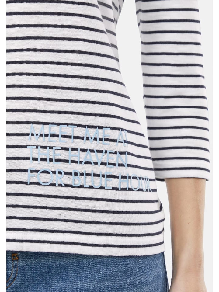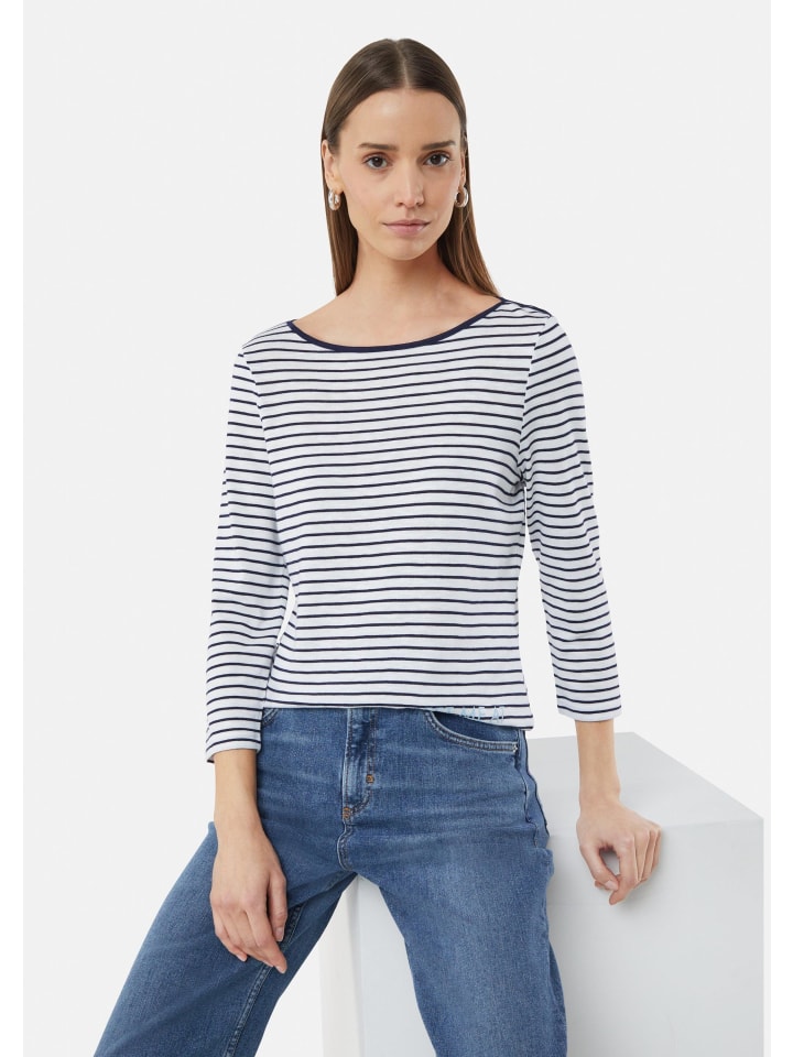 Полосатый шик и комфорт: эта трикотажная рубашка средней длины из джерси сочетает в себе стиль и комфорт. Приталенный крой и рукава ¾ подчеркнут вашу фигуру, а рисунок добавит индивидуальности. Смесь хлопка и модала обеспечит комфорт. Идеально подходит для повседневных случаев - сочетайте ее с джинсами или юбкой для создания непринужденного, но стильного образа.