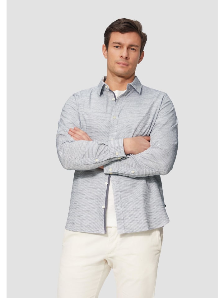 Эта рубашка приталенного кроя с воротником Kent сочетает в себе непринужденный повседневный стиль и классическую элегантность. Эластичный хлопок и закругленный низ обеспечивают максимальный комфорт - идеально для современной повседневной носки.