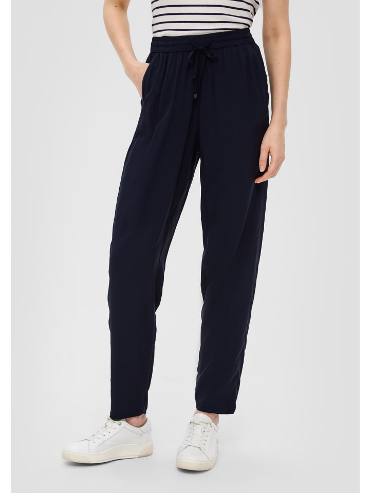 Эти воздушные, легкие брюки длиной до щиколотки из чистой вискозы впечатляют свободным кроем и практичными боковыми карманами. Средняя посадка и кулиска на талии обеспечивают комфортную повседневную носку.