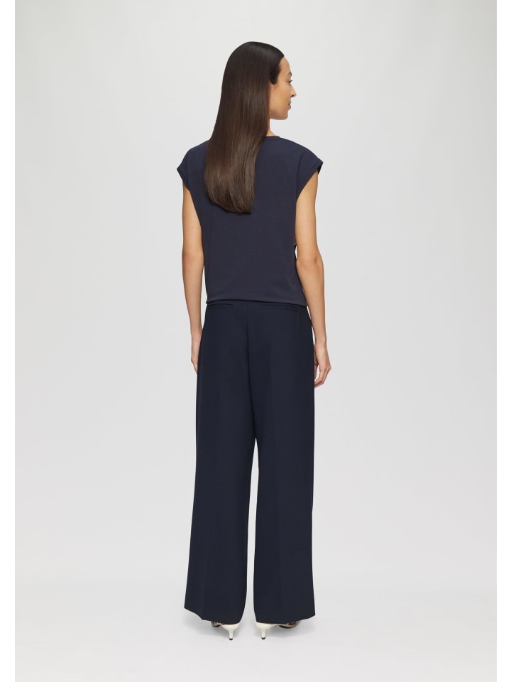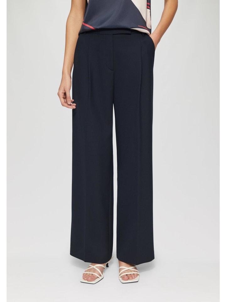 Искусство уверенного стиля легко воплотить в этих изысканных брюках с высокой талией. Широкие штанины и элегантные складки создают струящийся силуэт, подчеркивающий ваш индивидуальный стиль. Изготовленные из высококачественной вискозной смеси, они сочетают в себе комфорт и элегантность - идеально подходят для офиса и ужина.