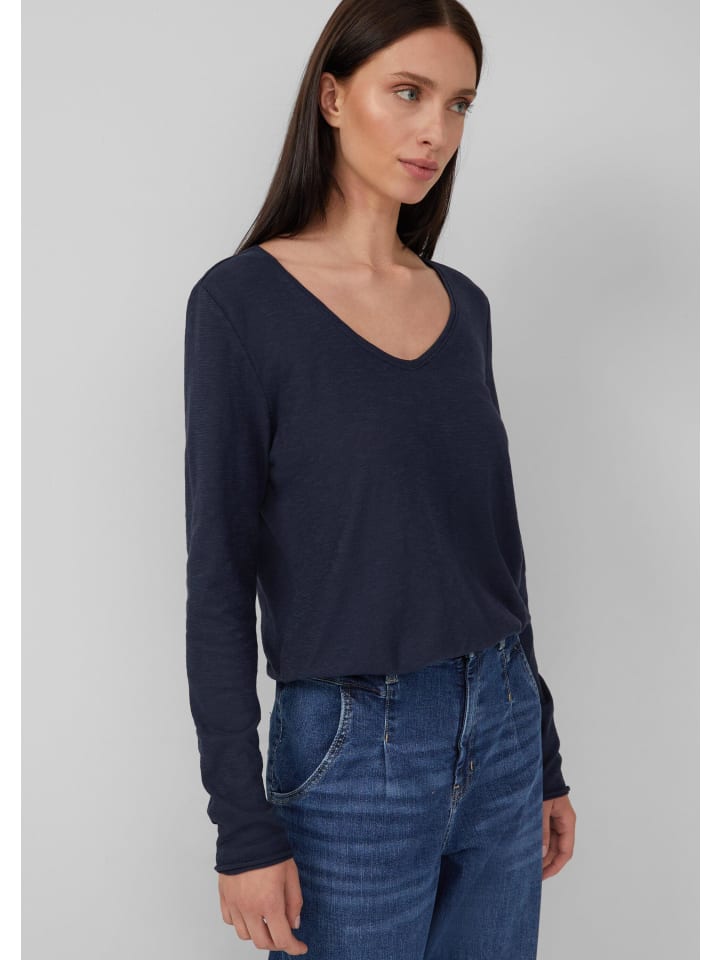 Эта мягкая трикотажная рубашка с V-образным вырезом и подвернутым краем станет вашим повседневным спутником. Классический крой и пряжа с фактурной нитью придают этой однотонной рубашке непринужденный вид. Нашивка с логотипом завершает образ.