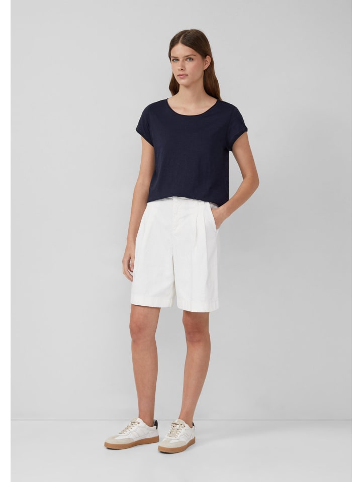 Непринужденный повседневный образ: эта полосатая трикотажная футболка с мягкой текстурой пряжи «sluff» впечатляет своим классическим круглым вырезом и удобным прямым кроем. Подвернутые края придают этой базовой модели особый шарм.
