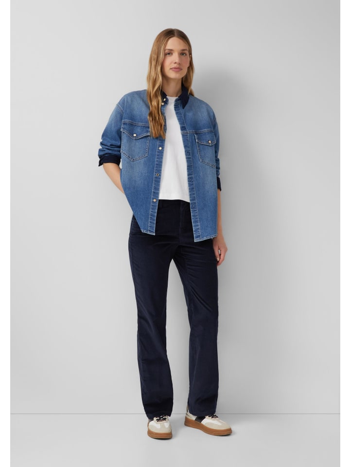 Эти вельветовые брюки из смесовой хлопковой ткани сочетают в себе комфорт и стиль. Благодаря классическому крою, средней талии и прямым брючинам они идеально подходят для повседневной носки. Пять карманов обеспечивают удобное хранение мелких вещей.