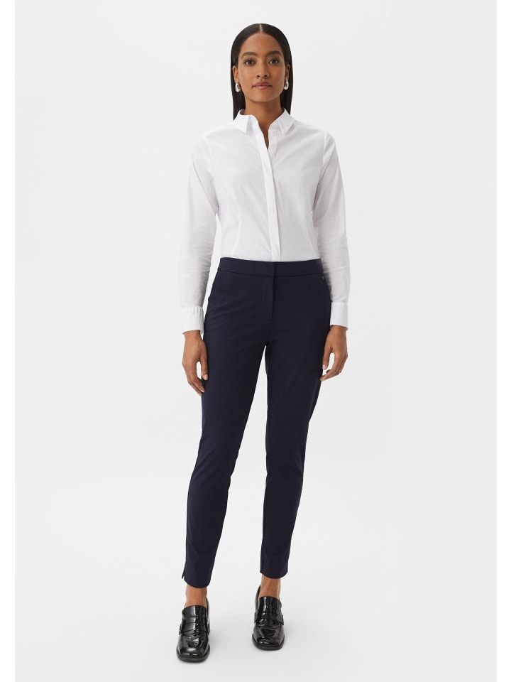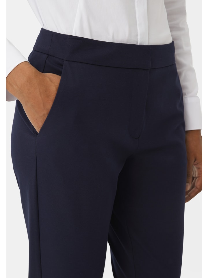 Неподвластный времени шик для деловой и повседневной жизни: эти облегающие брюки из эластичной вискозной смеси идеально подчеркивают вашу фигуру. Благодаря поясу средней высоты и длине 7/8 вы будете наслаждаться идеальной посадкой для уверенного образа. Классический женственный дизайн с боковыми карманами и застежкой на крючок впечатляет продуманными деталями. Сочетайте брюки с футболкой или надевайте с блейзером.
