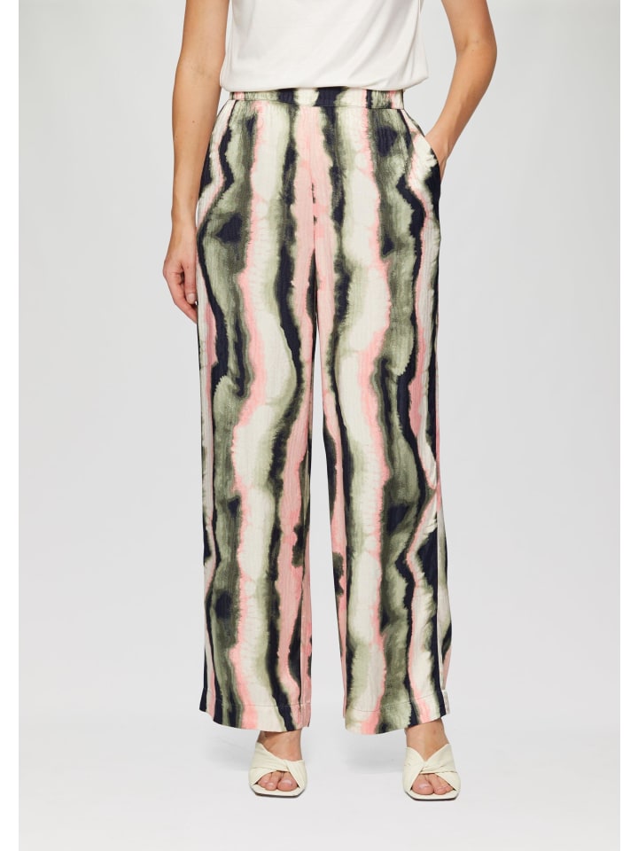 Сверкающая элегантность и повседневный комфорт! Эти брюки широкого кроя из атласно-вискозного жаккарда очаровывают своим тонким фактурным узором. Эластичный пояс обеспечивает удобную посадку, а бесшовные карманы добавляют практичности. Идеально подходят для непринужденных повседневных образов или стильных вечерних нарядов - комбинируйте их по-разному и создавайте свой собственный образ!