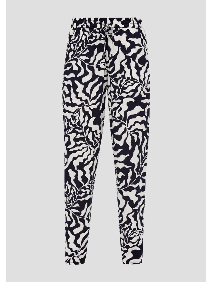 Эти струящиеся брюки из чистой вискозы создают непринужденный образ благодаря стильному принту по всей поверхности. Удобный эластичный пояс, практичные боковые карманы и зауженные брючины делают их идеальным дополнением для расслабленного отдыха.