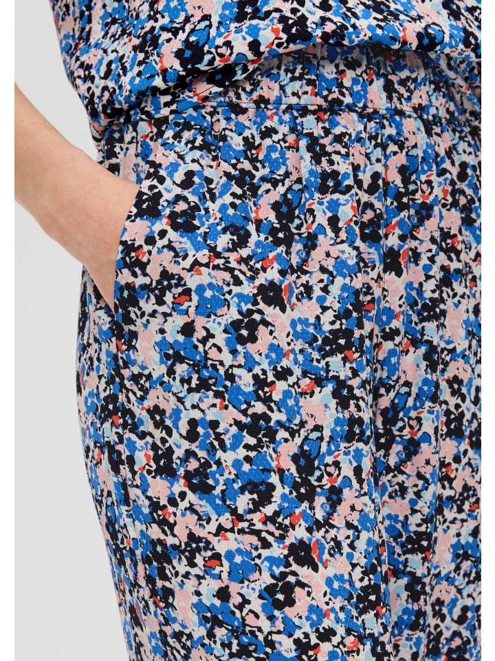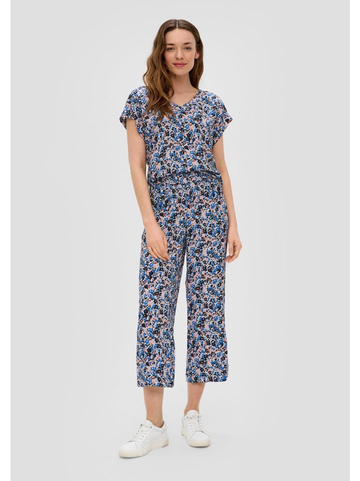 Эти воздушные, легкие брюки широкого кроя из вискозы очаровывают своим цветочным принтом по всей поверхности. Удобный пояс на резинке и свободная длина кюлотов делают их идеальным компаньоном для неспешных летних дней.
