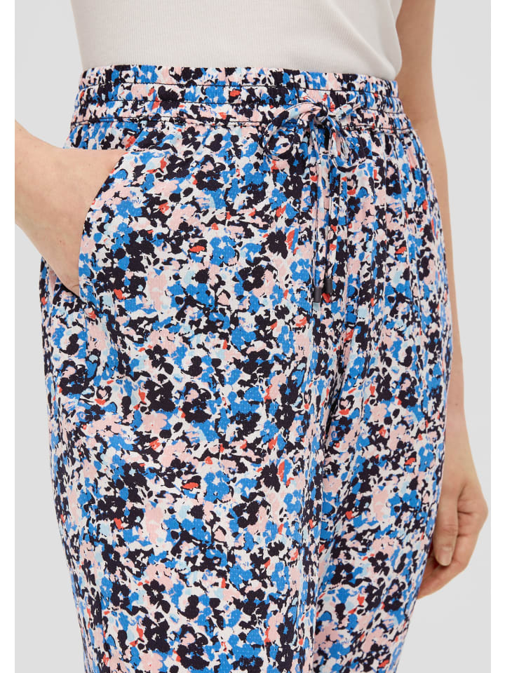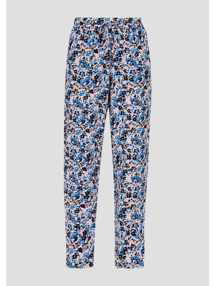 Эти струящиеся брюки из чистой вискозы создают непринужденный образ благодаря стильному принту по всей поверхности. Удобный эластичный пояс, практичные боковые карманы и зауженные брючины делают их идеальным дополнением для расслабленного отдыха.