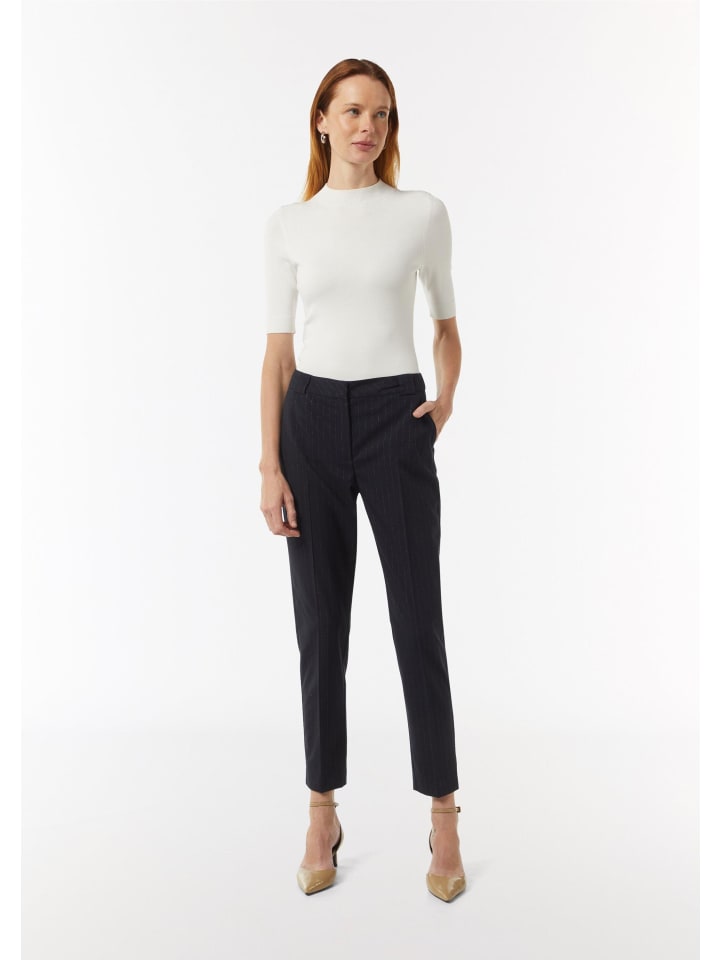 Брюки-сигареты с гламурным оттенком: эти высококачественные брюки 7/8 сочетают в себе деловой шик и утонченную экстравагантность. Сдержанный блестящий эффект добавит роскоши вашему образу. Благодаря средней посадке на талии и классическому крою они подчеркивают любую фигуру, а узкие брючины создают обтекаемый силуэт. Сочетайте брюки с шелковой блузкой для элегантного офисного образа или с эффектным топом для гламурного вечернего выхода.